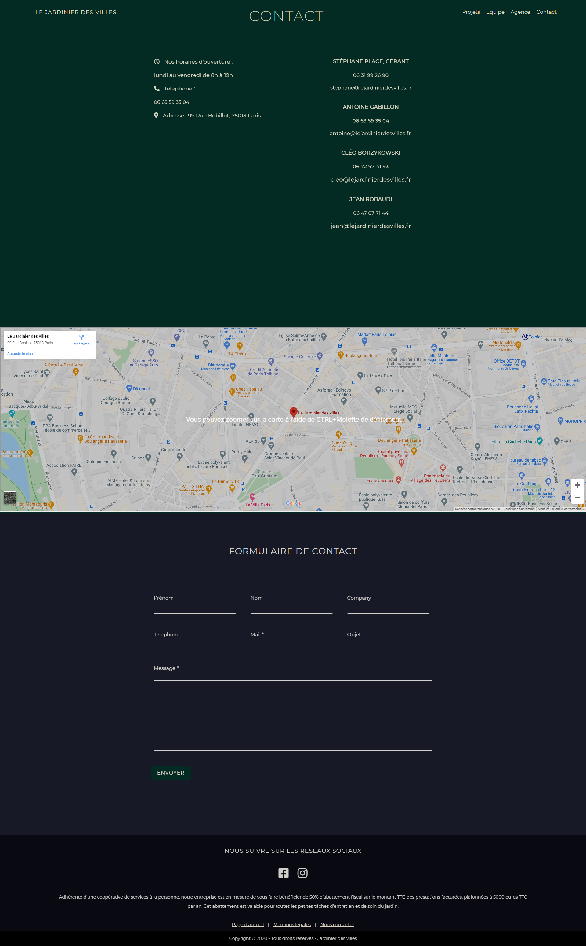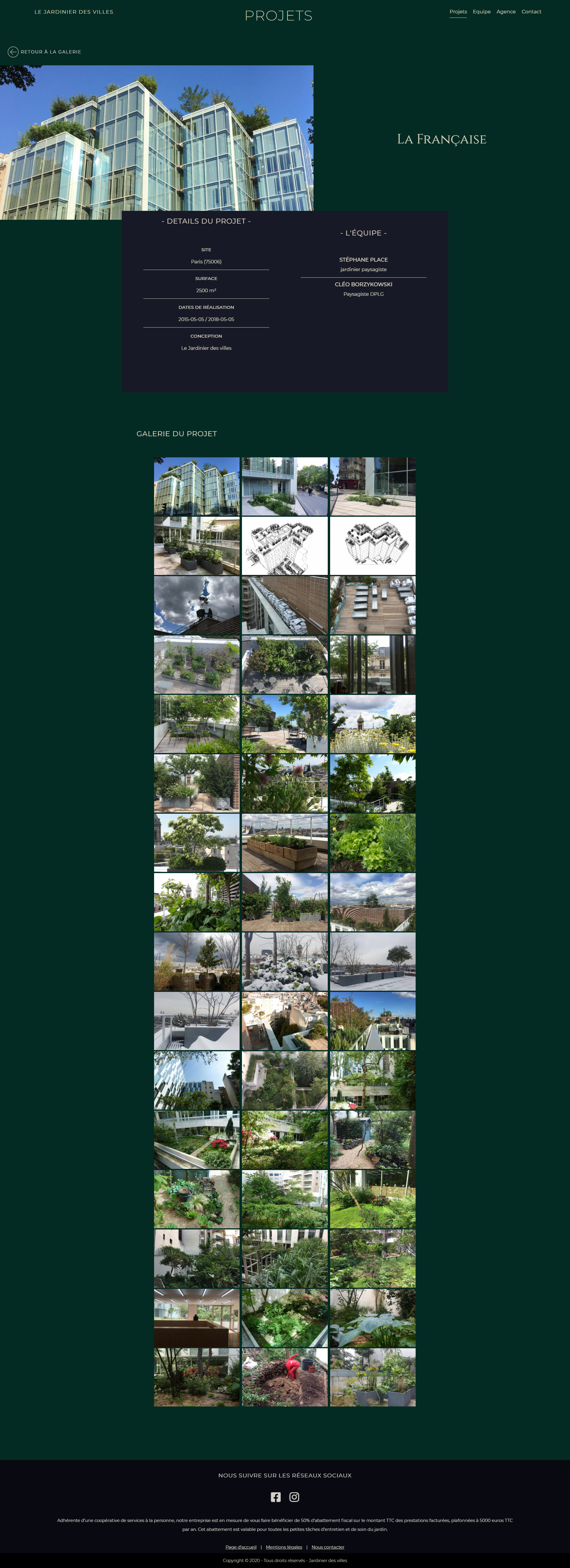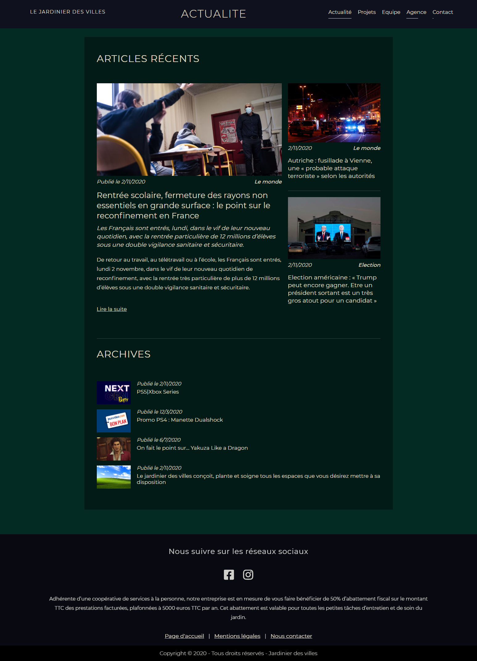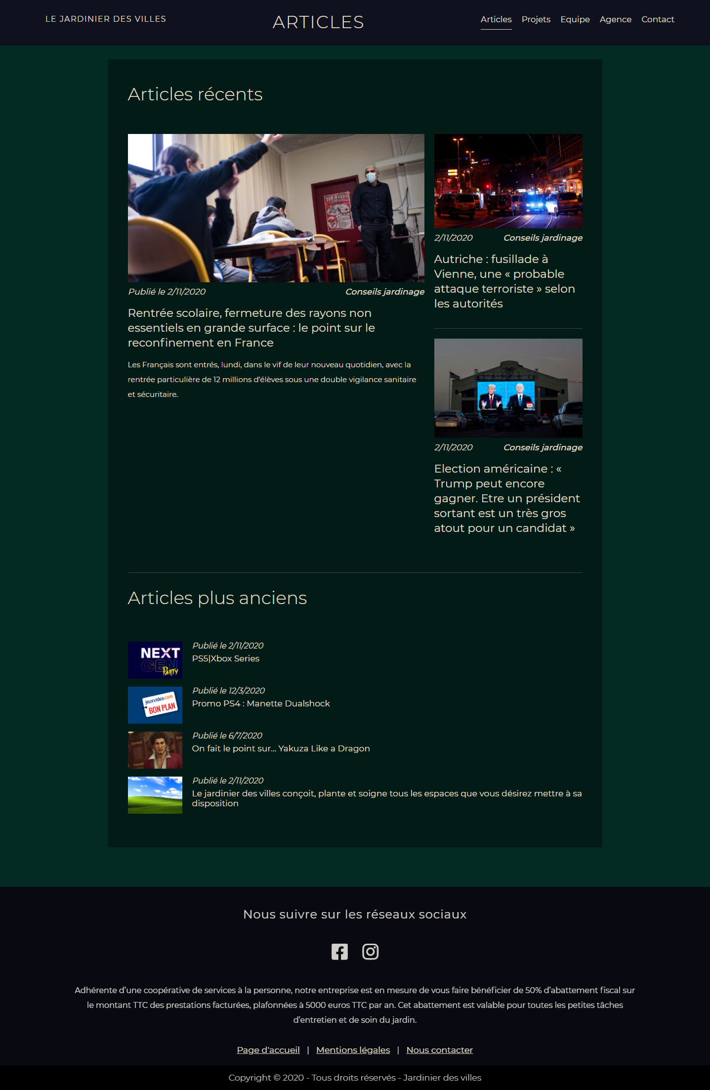 Projet personnel - Site vitrine pour un jardinier des villes, création d'un site présentant les services offerts par le jardinier des villes ainsi que les différents projets réalisés par celui-ci. Un back-office a été créé pour gérer le contenu du site.