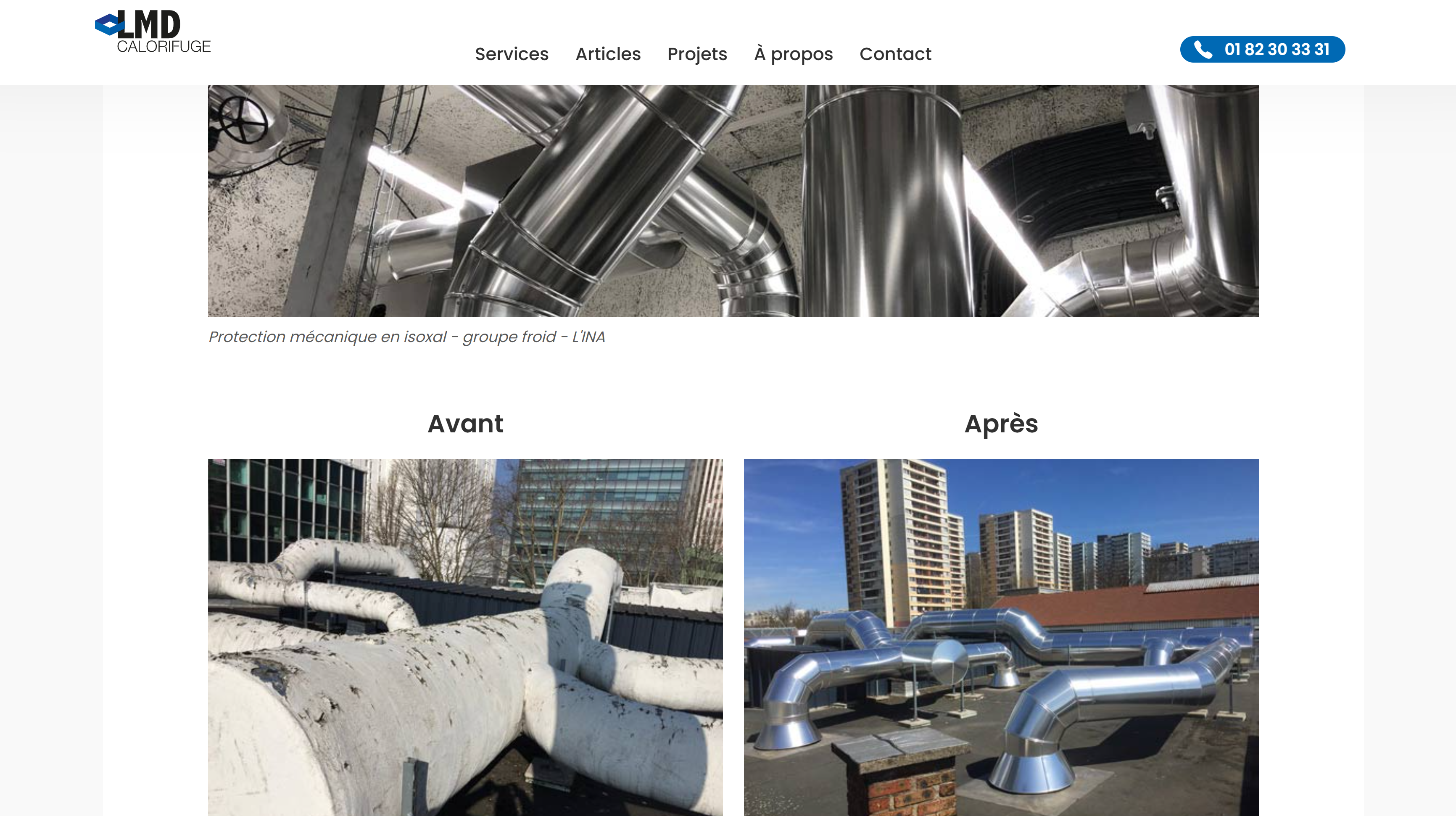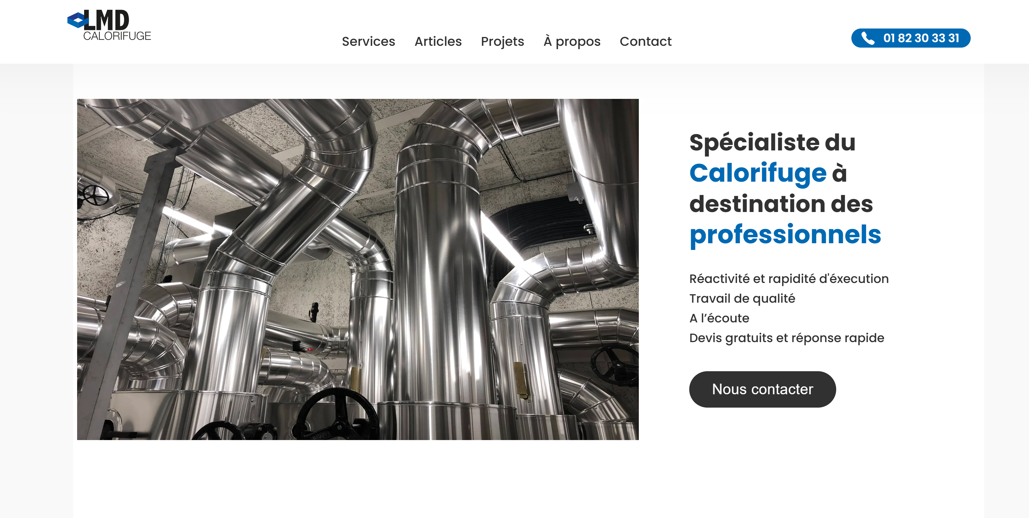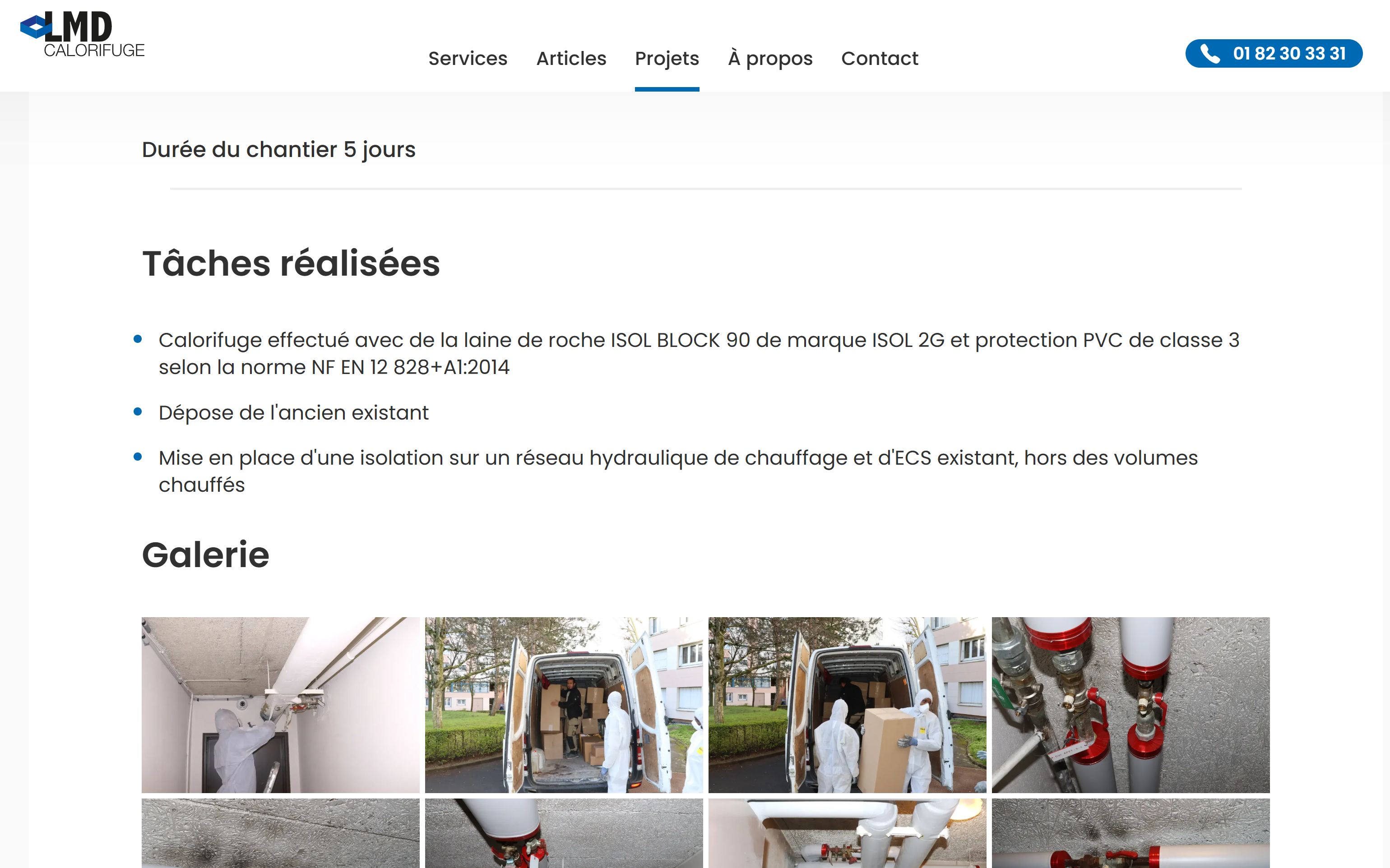 Site vitrine pour l'entreprise LMD-Calorifuge, permettant de découvrir les services offerts par l'entreprise. LMD-Calorifuge est une entreprise spécialisée dans la réalisation de projets d'isolation thermique et de calorifugeage pour les entreprises.